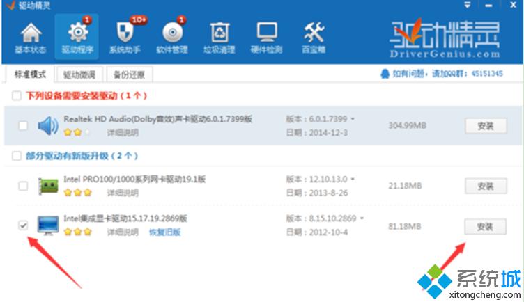 2、打开后驱动精灵进行立即检测,这时会发现显卡驱动没有安装或错误的问题,然后点击立即解决按钮即可开始安装。