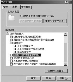 Windows\system的目录下建立Kernel32.exe和Sysexplr.exe的两个空文件,过程如下:点击[开始]→[控制面板]→[文件夹选项],选择“查看”选项卡(如图1),找到“隐藏已知文件扩展名”选项,把它前面的对勾去掉。新建文本,将文件名(包括“扩展名”)改成Kernel32.exe和Sysexplr.exe,然后将文件属性设为只读、系统。在