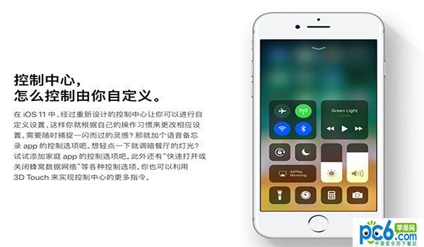 原本的控制中心得到了重新设计,占据的空间更大,但更加方便,将大量快捷功能按照多区域划分,支持自定义设置,支持 3D Touch。你可以将各种 app 加入控制中心,快速开启或关闭移动蜂窝数据也已经支持。锁屏界面新增更快捷查看通知的方式,从屏幕顶部向下拉即可进行更多操作,包括查看最近收到和未读的通知。