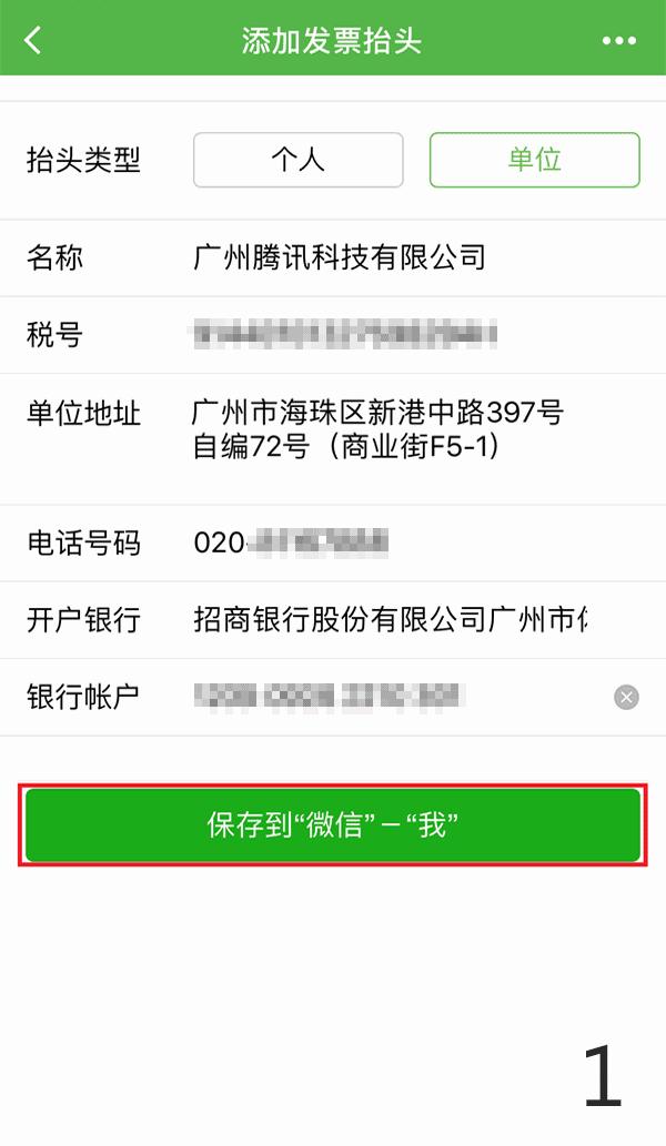 使用过这两个功能之一后,你的个人资料(微信客户端“我-我的发票抬头”)中也有发票信息了。