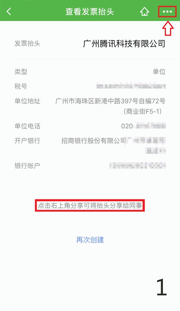 2、不想填写这么复杂的信息???可以请已经配置好发票抬头信息的同事分享小程序链接,即可一键保存发票抬头在自己的微信个人资料中。