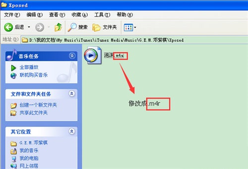 8、把创建好的手机铃声在本地电脑里面找到;因为创建的AAC版本的铃声不是苹果手机铃声的版本,必须要修改一下它的扩展名可以作为手机铃声来使用;把铃声的扩展名m4a修改成m4r就可以啦;不显示扩展名的可以先设置显示除扩展名在修改。