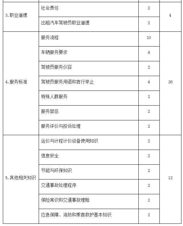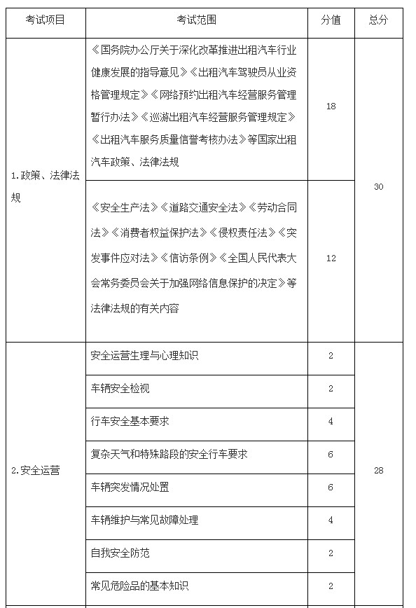 网约车驾驶员考试大纲详细内容: