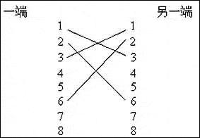那么双机对联网线与普通网线有什么区别呢?其实它们的外表及制作材料都是相同的,只不过绞线两端的RJ-45连接器(俗称水晶头)中线的排列不一样。双机对联线应用于两台机器通过两个网卡直连,如果采用5类双绞线通过10M网卡互联时,网线的夹线方法非常容易,方法是把网线一端的1和2分别与另一端的3和6对应,3和6分别与另一端的1和2对应,其他线不变,连接后,线的顺序如图1所示。如果是对于100M网卡,稍微有点不同,比较正规的是一端的顺序是12345678,另一端的顺序是36148275。采取这样夹线方法做出来的网线就叫双机对联线。