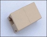 电脑城买一种可以使两节网线连接成一根的网线连接器(图2),这个网线连接器很不错的,两端有两个八根线的RJ-45接口,而且只花两块钱就可以买到,宽带插座可要十几块的。因为插口分为两种,一种是里面有四个接触点,这是10M网卡所用的,它的传输速度最高只能达到10M。另外一种接口里边有八个接触点,它是100M网卡上用的接口,传输速度最高能达到100M。当然最好采用有八个接触点的RJ-45接口,这样转换出来的网线可以保证用两块100M网卡连接时达到最大速度100M。另外需要准备的就是一个水晶头,这个水晶头质量有好有坏,五角、一块的都有,