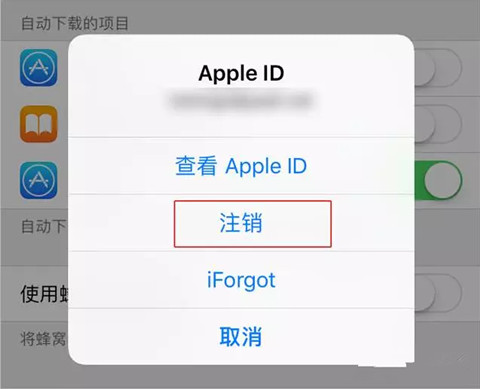 2.注销Apple ID。【设置】-【iTunes Store与App Store】,点击自己的Apple ID,选择【注销】。