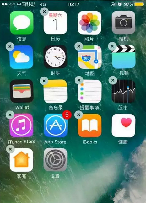 iOS10里面只要长按某个图标,出现抖动的时候,就可以“移除”应用了,比如股票、天气、地图和日历等等。不小心误删的话,可以通过 App Store 来恢复即可。