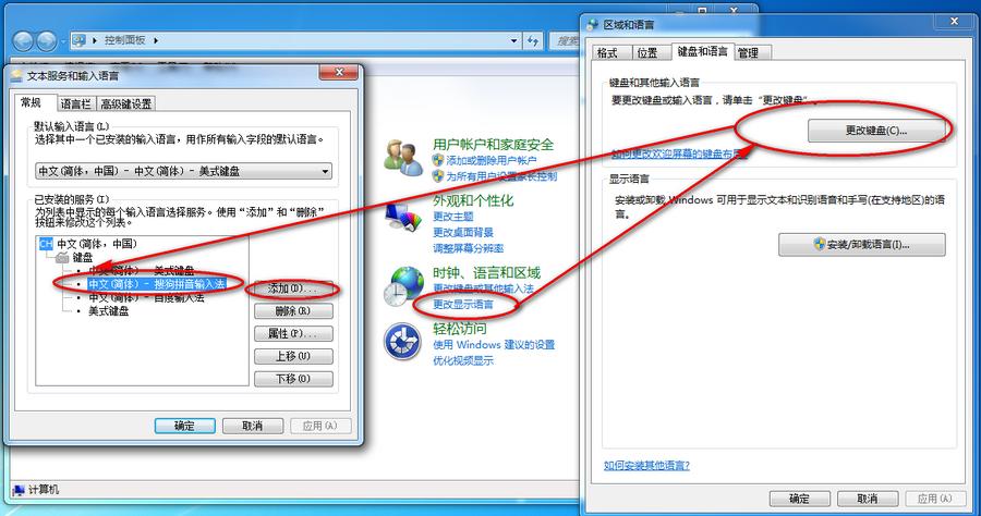 方法一:右击任务栏上的语言图标,然后单击“设置"----添加。找到搜狗输入法添加。