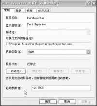 网络的使用情况。PR-PIDS-.log该文件记录了本机每个开放端口对应的进程通信情况。PR-PORTS-.log该文件记录了当前所有侦听端口,并且记录了每个端口所对应的应用程序。通过查看以上三种类型日志文件,就可以清楚的了解到系统所有进程当前的运行状态,以及对应端口使用情况,让病毒、木马无处藏身。 三、服务参数自定义自定义日志文件保存目录PortReporter服务的日志文件默认保存在“%systemroot%\System32\LogFiles\PortReporter”目录中,用户查看非常不方便。使用参数“-ld” 可以自定义日志文件保存目录。在服务属性窗口中双击“Port Reporter”服务,弹出Port Reporter属性对话框,点击“停止”按钮。这里笔者将日志文件保存在E盘log目录下,在“启动参数”栏中输入“-ld 'e:\log'”参数(如图2),最后点击“启动”按钮即可。