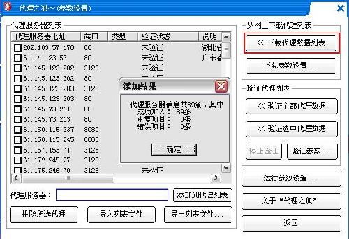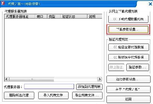 3、点选下载参数设置,选择或输入“代理列表下载网址”并确定