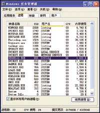 Windows任务管理器,马上发现了原因:进程“KERNEL32.EXE”居然占用了CPU的90%以上资源!怀疑是木马或病毒在作怪。如何来确定它一定是木马病毒,并知道它打开了
