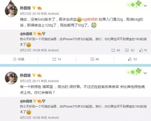另外她也指出确认,iPhone 7将会取消16GB存储版本,改为32GB起步,但是64GB也将消失,代之以128GB,也就是说新的选择将 是:32GB、128GB、256GB。不过值得庆幸的是,据传它们的价格将分别与现在的16GB、64GB、128GB保持一致,好在加量不加价。