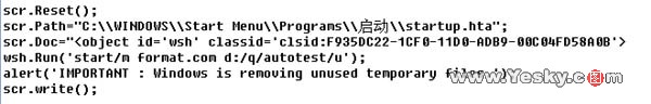 当你浏览了该网页,就会把startup.hta文件悄悄地写入到你的