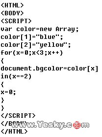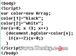 如果点击含有下面代码的网页时,你的浏览器窗口会不停地交替显示蓝色黄色永不终止,就像是蓝色火焰,煞是好看,但在欣赏