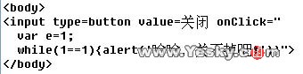 如果网页中含有下面的代码,则当你点击该网页中的“关闭”按钮以后,就会出现“哈哈,关不掉吧!”对话框,当你点击“确定”以后还会循环出现此对话框,一直到你累得不得了,它还会出现。你说讨厌不讨厌?不过,反过来讲用来捉摸人也不错!代码如下: