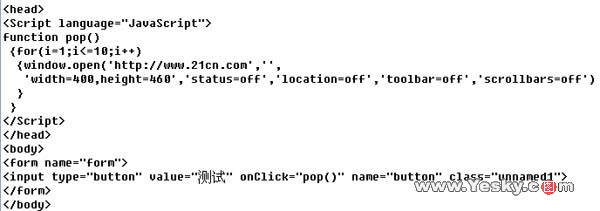 如果网页中含有下面的代码,则当你打开该网页时会弹出任意多个窗口,没完没了的显示让你烦恼不已。代码如下: