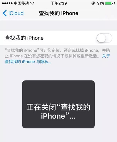 1.郑重提示,记得备份!然后首先关闭“查找我的iPhone功能”。进入 设置iCloud查找我的iPhone,将开关按钮关闭。关闭该功能需要你输入Apple ID密码。