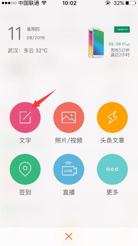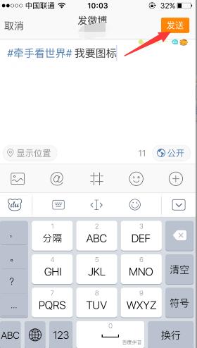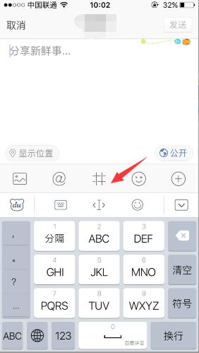 然后就进入到了发微博的页面了,中间是直接打字的,勾选“#”
