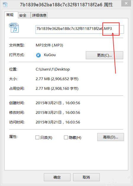 3、重命名这个文件,后面的.改成添加扩展名.MP3。最后用音乐播放器转换成MP3格式,比如千千静听(可行)。