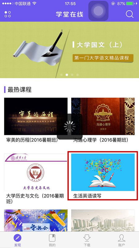3、点击你想要学习的课程,等待下载