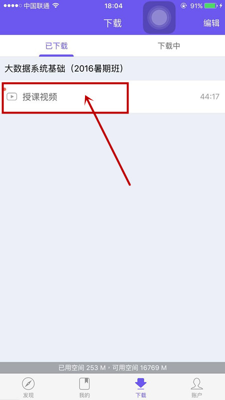 4、下载完后点击下载,可以看到下载的课程。