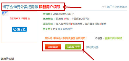 3、每个商家的优惠卷领取的要求都不一样,用户在领取的时候看清楚标题和有效期,还有领取限制,不然到时候购买物品后发现使用不了那就糟了哦!