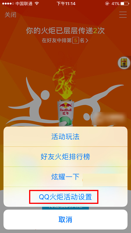 2、然后在该页面的右上角点击一下三横线的图标,点击一下【QQ火炬活动设置】,如图所示。