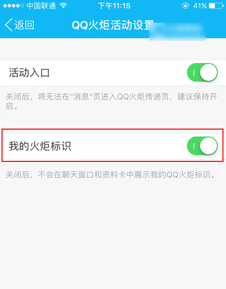 3、在QQ火炬活动设置的最底部找到一项名为“我的火炬标”选项,将其开关关闭就可以了,如下图所示。