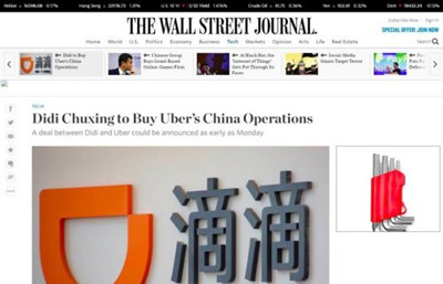 随后,华尔街日报也对二者合并作出报道,称滴滴出行已经与Uber中国达成收购协议,消息最早周一公布,作为股权互换协议的一部分,Uber将成为该合并公司的最大股东。