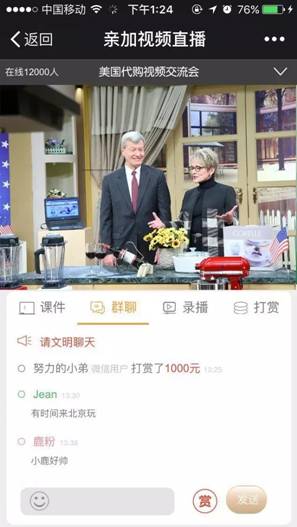 3,实时互动聊天,增加聊天,打赏功能。也可以给微信直播的人一些鼓励,这些也很类似于直播的一些虚拟物品打赏。