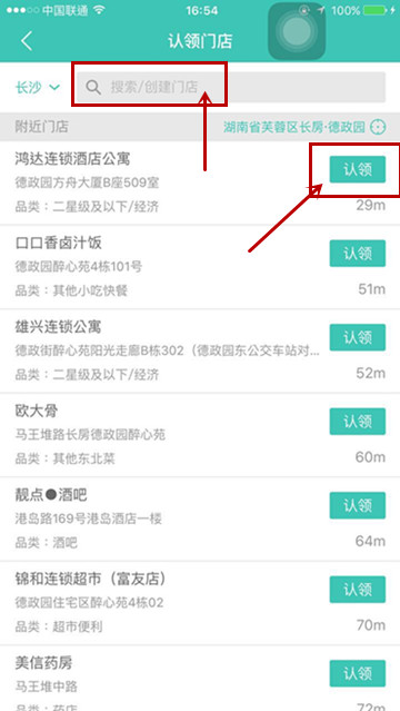 4、点击注册后就需要认领门店,还有资质认证,就是要上传一些身份信息及店铺信息,还有店铺的详细地址等等。这些搞定之后就会有商服跟你联系的,基本上签订了协议之后就开店成功了!如果没有你需要的门店,可以点击搜索/创建门店。