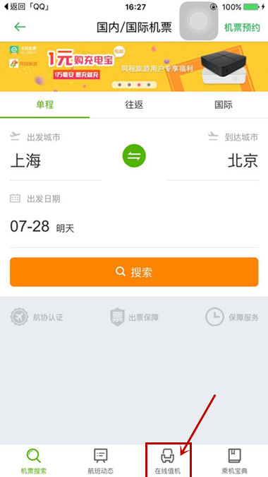 2、点击“机票”后,选择“在线值机”,可以选座位,也可以查看机票。同程电子机票服务一般是需要提前支付票款的,查电子客票,支付,收短信,联系方式等,出示身份证换登记牌就可,日期,乘飞机当日提前两小时去值机柜台,拨打客服确认下机票情况,都是电子客票,不存在取票一说,你要先去银行开通网银服务。