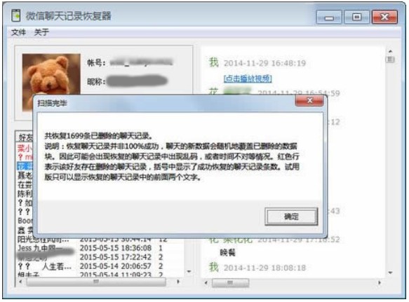9,恢复数据需要一定的时间,请耐心等待,具体需要的时间与该微信号中与好友的微信聊天记录多少有关,可能在几分钟到几个小时之间都是有可能的。待扫描完成后,苹果手机微信聊天记录删除了怎么恢复的问题就解决了,如下图所示。