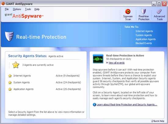 网络监控不同,Giant AntiSpyware为用户提供了一整套即时监控保护,能及时有效地监控