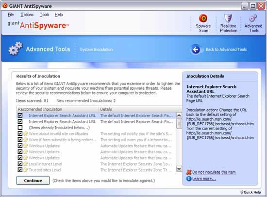 System Inoculation可以检测你的机器中可能出现的安全漏洞: