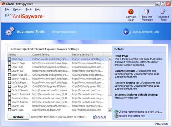 相信大家都在为Internet Explorer被某些恶意网站修改而感到心烦吧?有Browser Hijack Restore,不管那些该死的网站怎么改,用户都可以非常轻松地恢复。