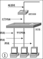 用交叉网线连接ADSL Modom的LAN端口与Hub的UpLink端口。当然你得先把电话线连接到Modom的Line端口上。再由Hub的其他端口通过平行网线连接到每台电脑的网卡上(如图1)。别接反啦!