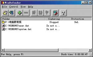 删除。对于这个问题,我们可以借助文件保护软件Windefender来解决。运行Windefender,在登录对话框中输入事先设置好的密码后,会弹出如图1所示的窗口,单击加号,加入需要保护的文件夹(图2),确定后,在弹出的对话框中选择“forbit to delete the file from to(禁止删除)”(图3),单击[OK]。这样,我们就可以高枕无忧了。