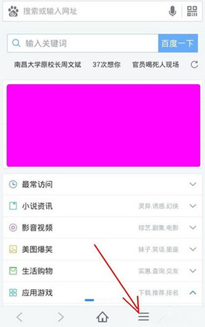 打开手机百度浏览器,点击下方三个横线的按钮。
