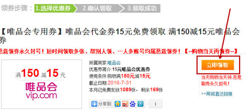 商家发货(既非唯品会发货)的订单不能使用代金券