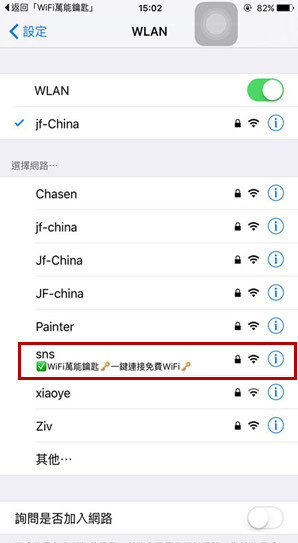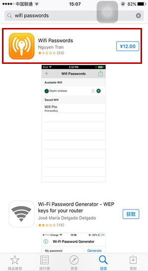 已经越狱的手机直接安装wifi passwords,安装完成桌面会有图标,打开刚才安装的WIFI Passwords
