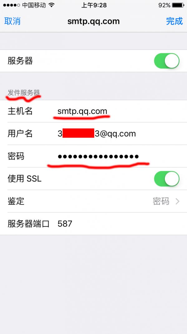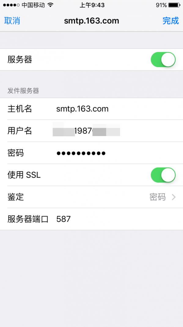 dtwydmlpunykbjba-----这个要手机设置端要使用 发件服务器密码 其他如图设置