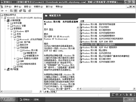 利用组策略集中部署SP2防火墙的操作并不复杂,但是它的效果却是一劳永逸的。大家会发现组策略对于集中管理网络安全来说实在是一个不可多得的好助手。