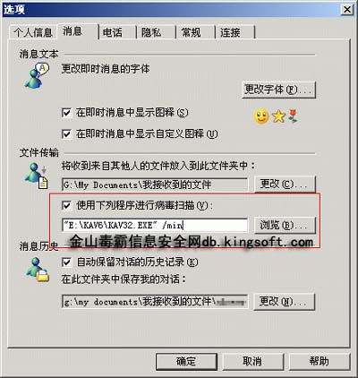 “MSN小尾巴”(Worm.MSNFunny)以及快的速度感染了许多用户,造成了极大的危害。金山毒霸在病毒爆发期就进行了紧急升级,更新病毒库后可防卸该病毒。另外,在MSN后期的版本中提供了一个查毒接口,简单几步设置及可将MSN与