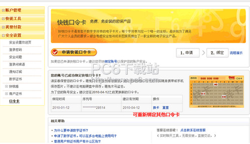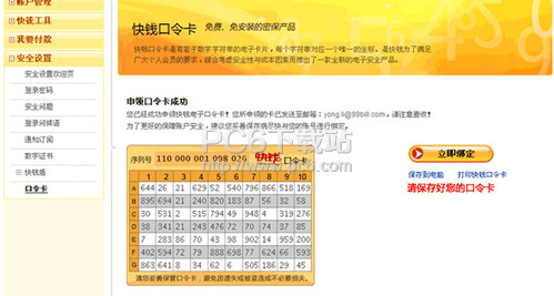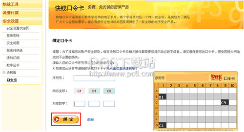 4.绑定成功后,根据提示输入口令卡序列号以及对应口令卡数字