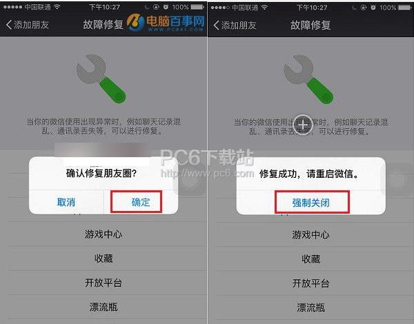 3、最后工具微信中出现的问题,选择修复。比如微信朋友圈存在异常,那么则上步选择中,点击「朋友圈」,然后在确认修复提示中,点击「确定」并完成修复即可。