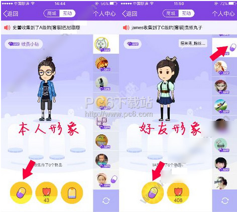 2、“打..打..打劫”——右边好友列表中,成熟的胶囊会展示在好友头像边,点击头像进入好友装扮页,即可获得小胶囊中的贴纸,当然所谓快手有慢手无,手快才能抢到,手慢的话说不定就被其他小伙伴抢走了哟~!