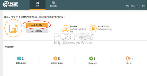 2、点击【从本地上传】上传需要签署的文件;