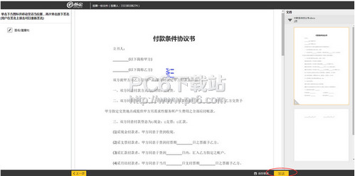 6、完成签名后,点击【发送】将文件发送至文件签收方,发起文件签署成功