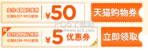 天猫购物券活动领券时间为:2016年6月7日00:00:00-6月20日23:59:59。